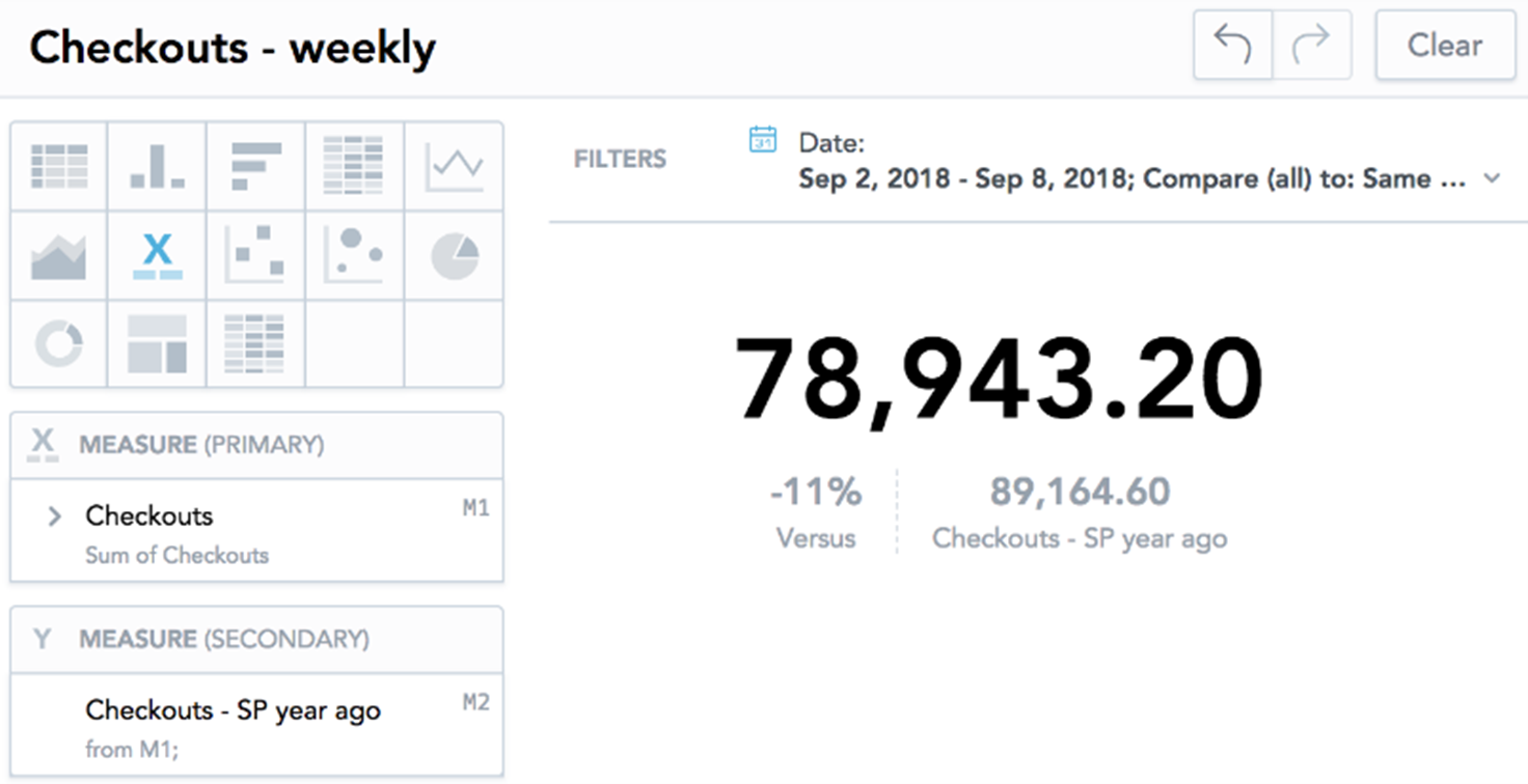 Use Headline insights to compare measures and attributes to the same period of the previous year.