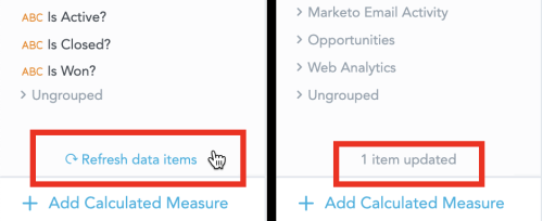 To refresh the data in your Data Catalog, hover your mouse over the catalog to display the refresh button and click the button.
